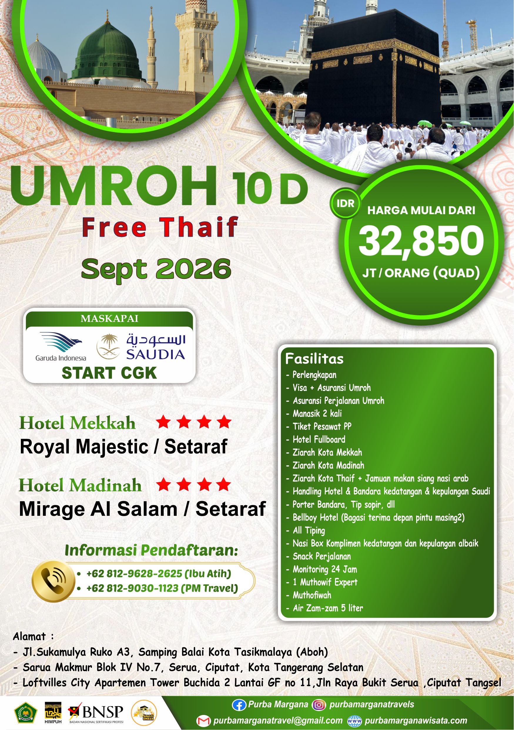 UMROHÂ 10D Free Thaif Keberangkatan Sept 2026